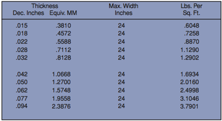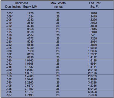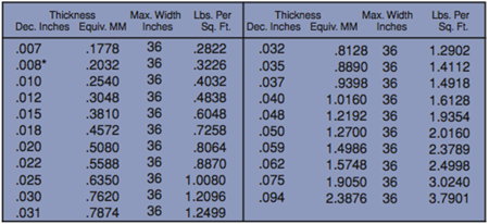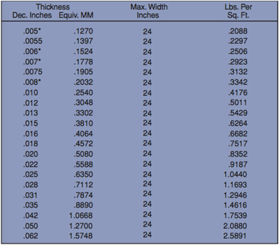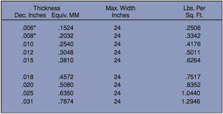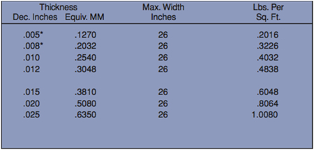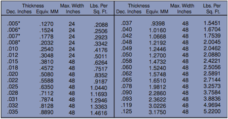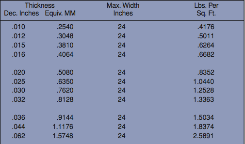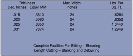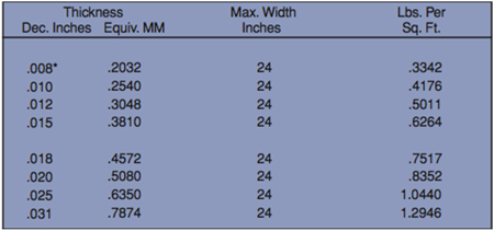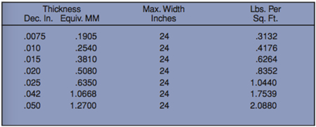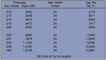 Descripción: Material suave y dúctil, excelente para troquelado profundo. Usado principalmente en la industria química, de refrigeración, papelera y procesadoras de alimentos.